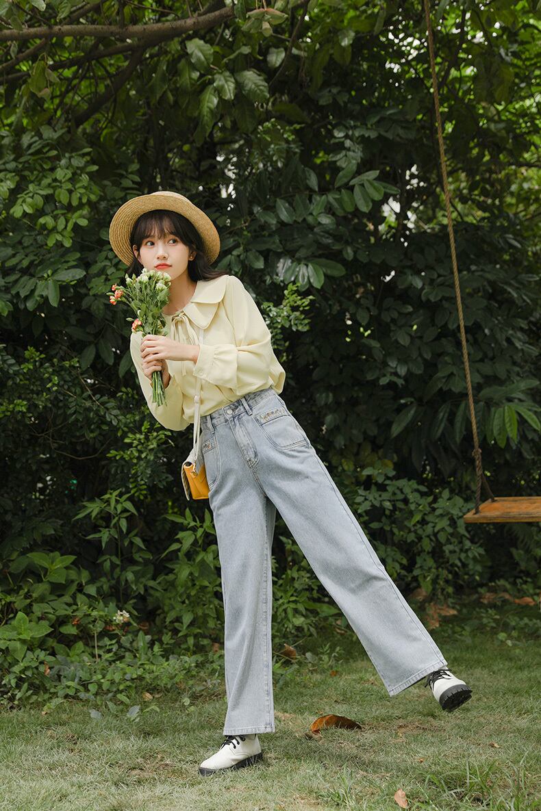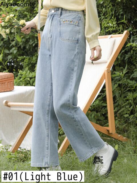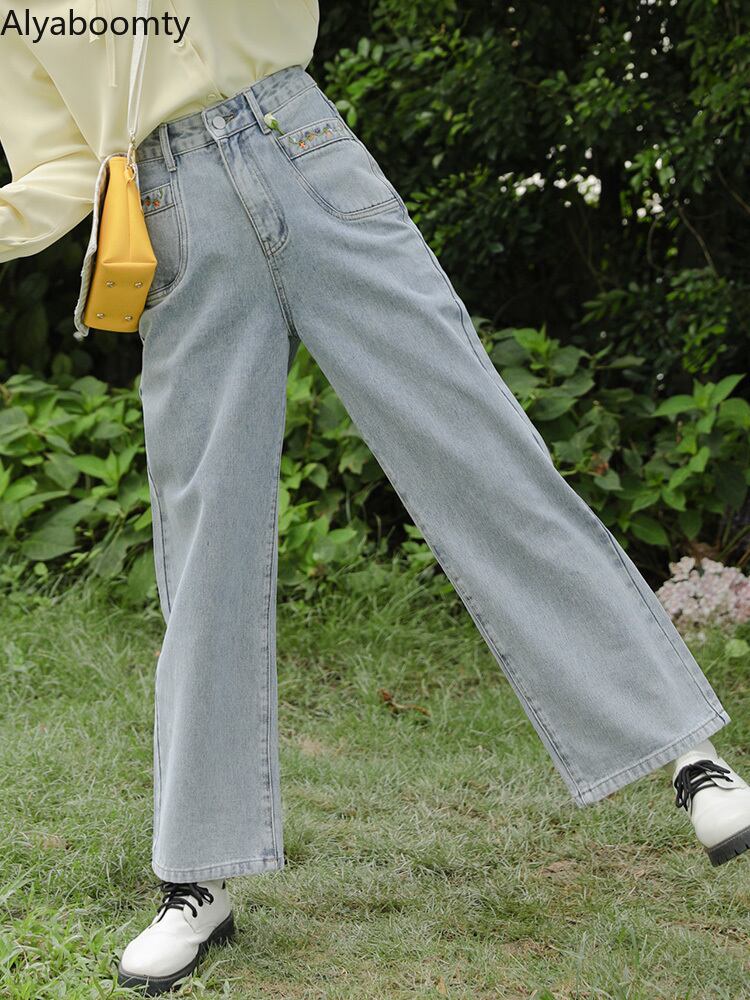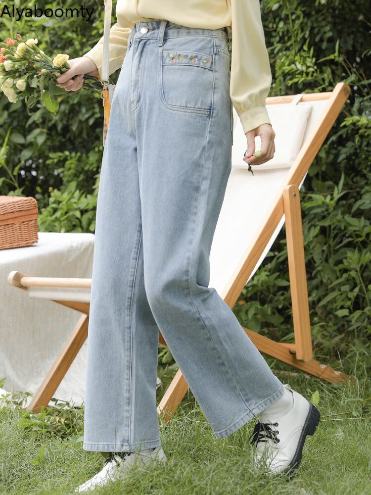 送料無料୨♥୧ スプリングオータムレディースウェストブルーヴィンテージジーンズ フローラル刺繍 大人ガーリー スウィート キュート カジュアル 春物 秋物 花柄 ビンテージ AOS71144113821