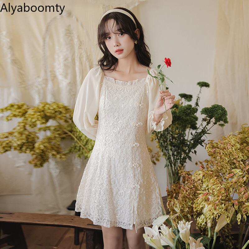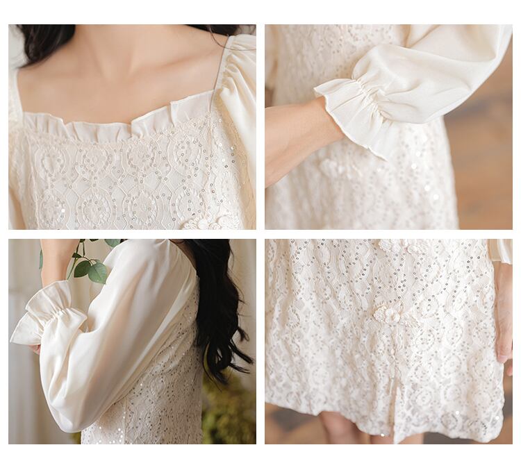 送料無料୨♥୧ スプリングオータムレディースミニドレス カラーレーススリーブ 大人ガーリー スウィート キュート カジュアル 春物 秋物 スクウェア AOS1732942213