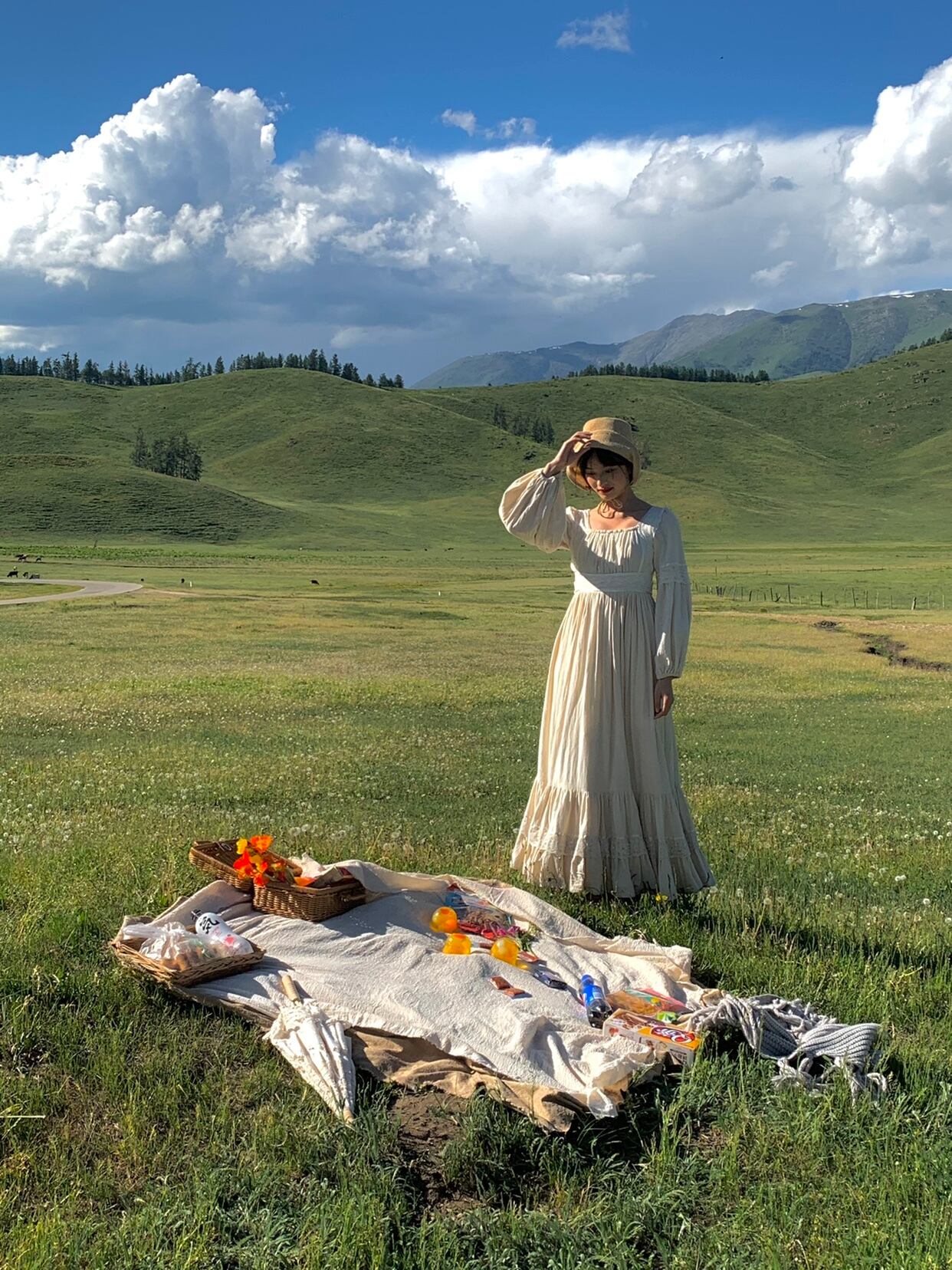 送料無料୨♥୧ レディースマキシロングドレス カラーレースフリルヴィンテージ コットン ラッフル スクウェア ビンテージ AOS43628752482