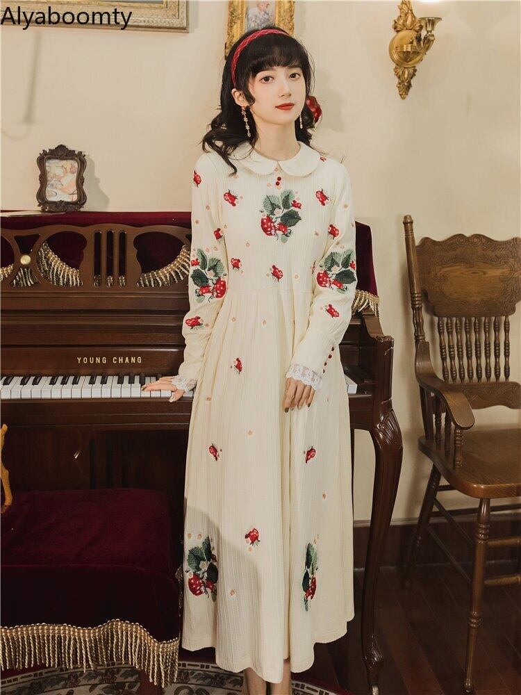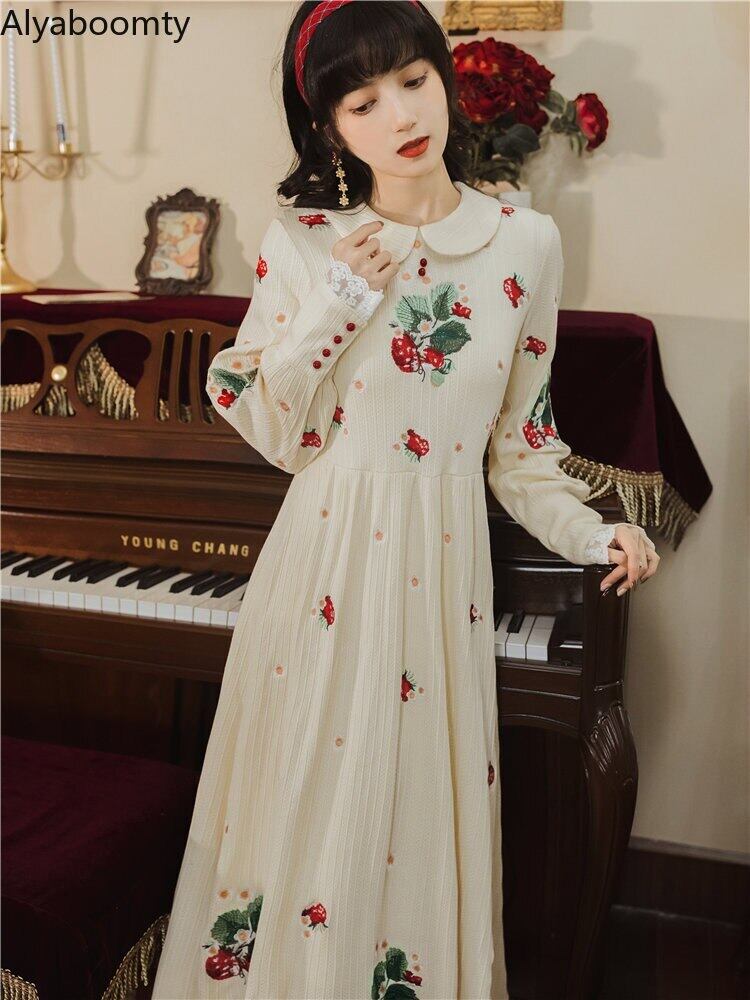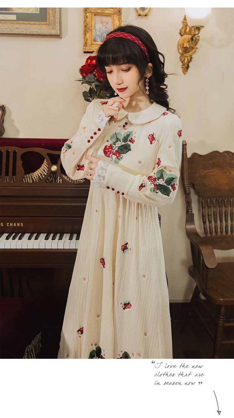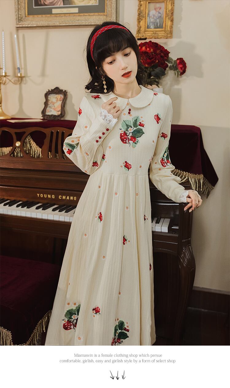 送料無料୨♥୧ オータムレディースセーター ドレス カラーニット フローラル刺繍ドレス ワンピース 大人ガーリー スウィート キュート カジュアル エレガント 秋物 花柄 AOS68231263117