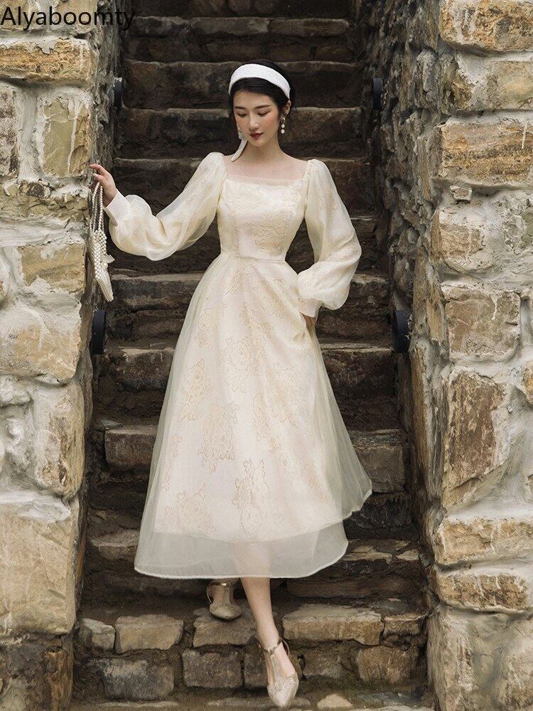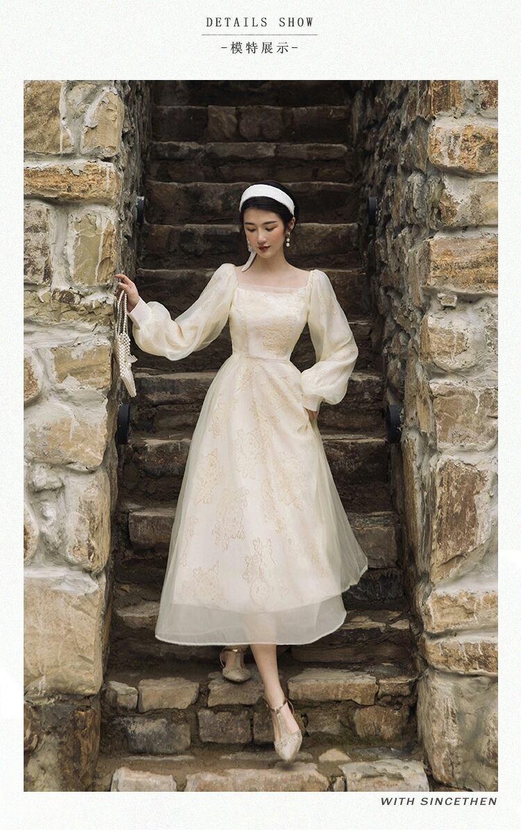 送料無料୨♥୧ オータムスプリングレディースロングドレス カラーフローラルレースメッシュスリーブ 春物 秋物 花柄 スクウェア AOS91355507347