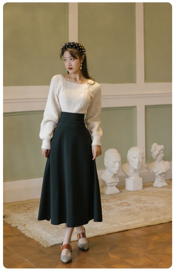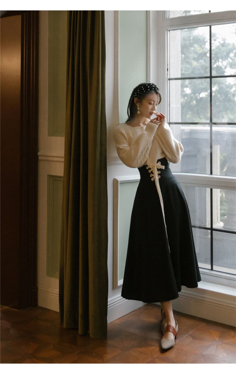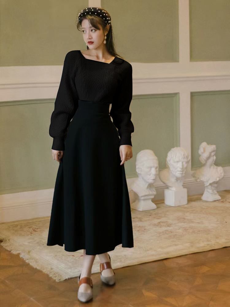 送料無料୨♥୧ スタイルオータムウィンターレディースセット レッドブラックセーター ミディスカート 秋物 冬物 ヨーロピアン AOS40815754805