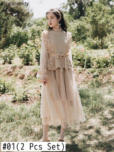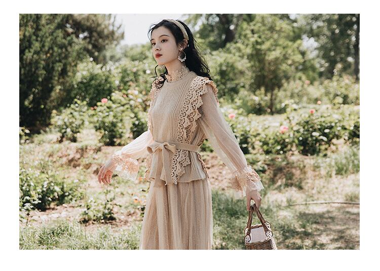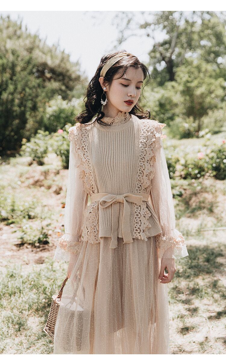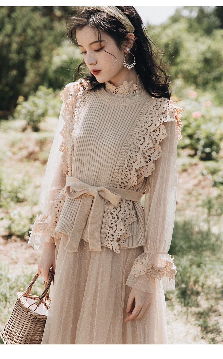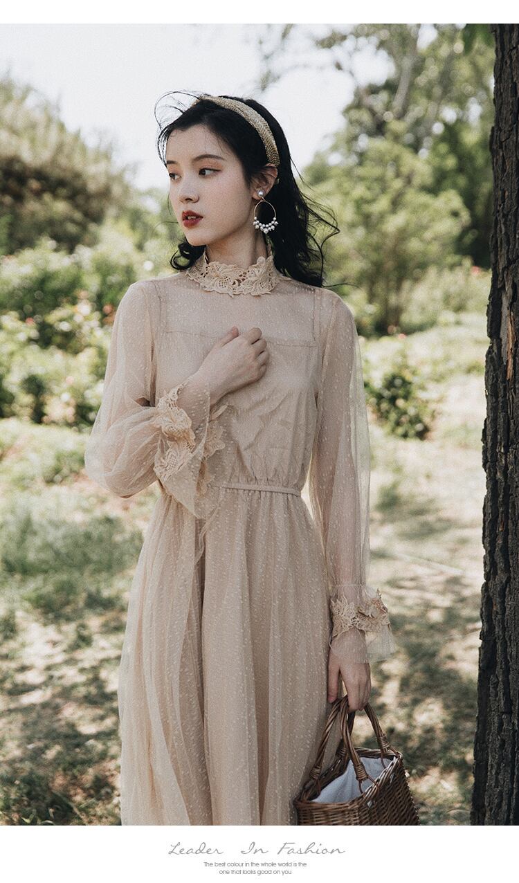 送料無料୨♥୧ オータムウィンターレディースドレス レース刺繍カーキ 大人ガーリー スウィート キュート カジュアル 秋物 冬物 AOS97073117407