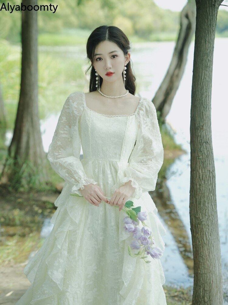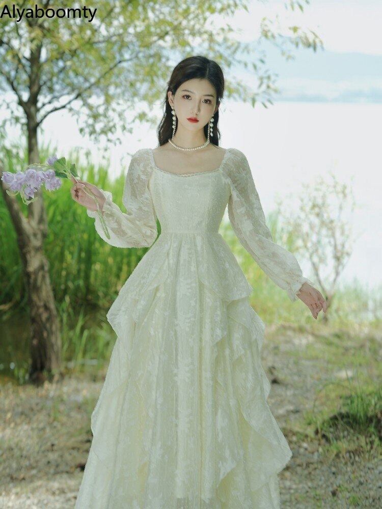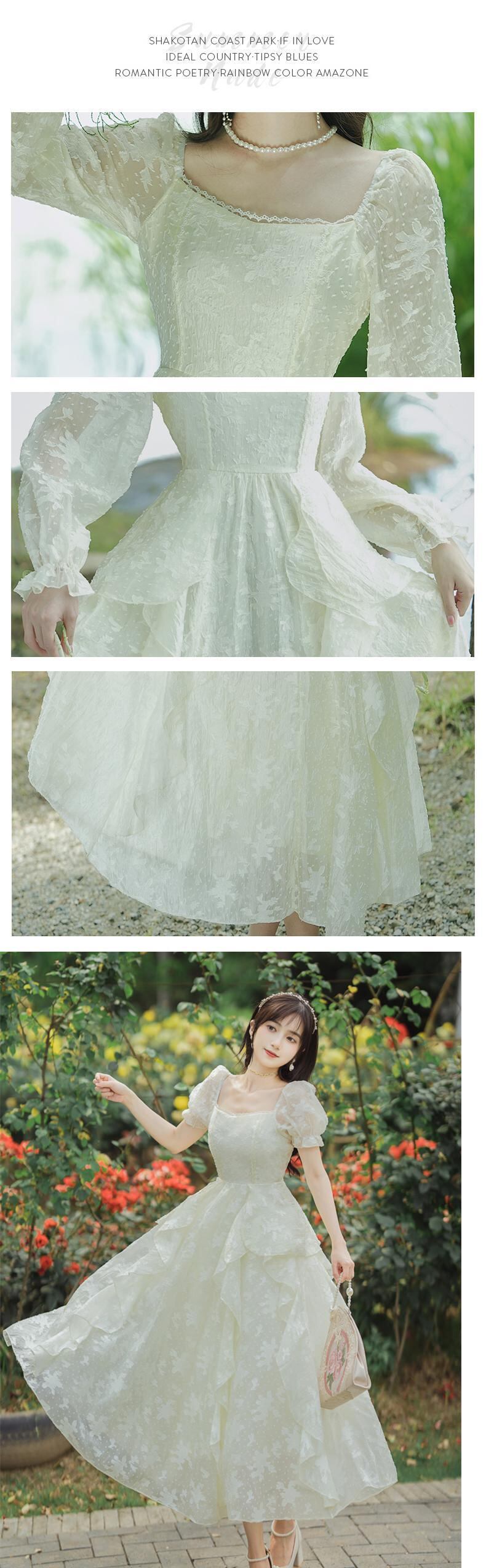 送料無料୨♥୧ サマースプリングレディースロングドレス カラーフローラル刺繍フリルレースドレス ワンピース レッド ラッフル 春物 夏物 花柄 スクウェア AOS94469688554