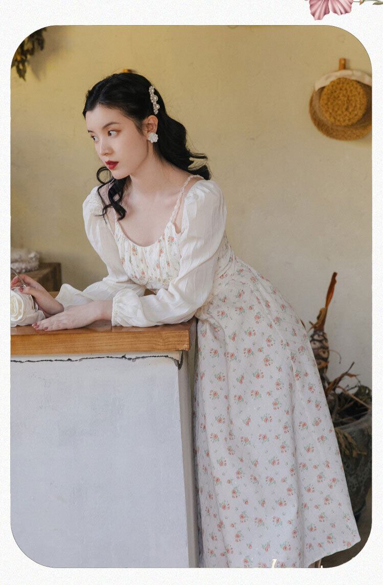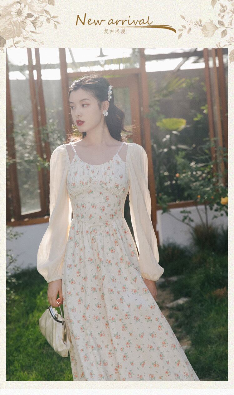 送料無料୨♥୧ スプリングオータムレディースミディラインドレス パッチワークフローラルスリーブドレス ワンピース 春物 秋物 花柄 Aライン AOS69968877128