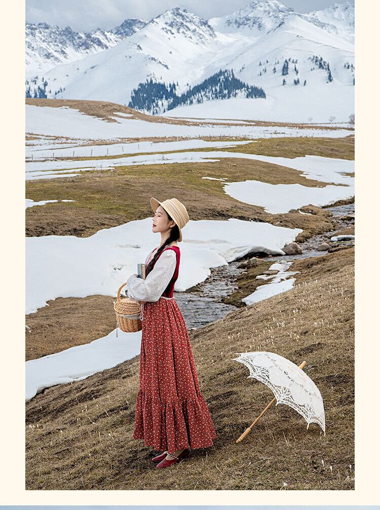 送料無料୨♥୧ スプリングオータムレディースマキシロングドレス パッチワークフローラルプリント柄ヴィンテージスタンダードフリル コットン レトロ ラッフル 大人ガーリー スウィート キュート カジュアル 春物 秋物 花柄 ビンテージ AOS8770077560