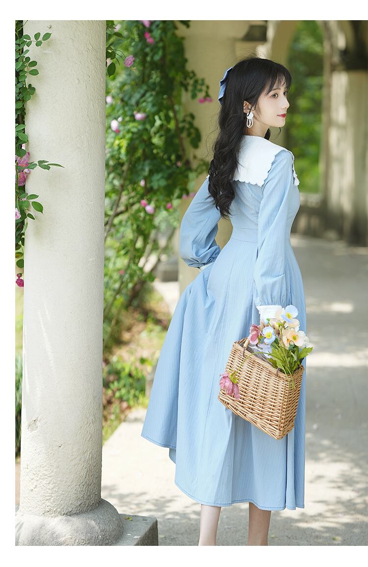 送料無料୨♥୧ スプリングレディースドレス カラーレースフリルブルーフローラル刺繍ミディ ラッフル 大人ガーリー スウィート キュート カジュアル 春物 花柄 AOS36467077962