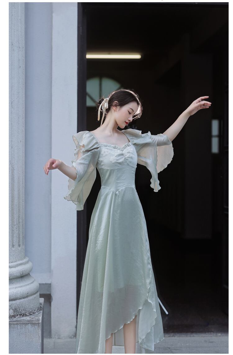送料無料୨♥୧ サマーレディースミディドレス カラーフローラルフリルスリーブ ラッフル 夏物 花柄 スクウェア AOS31882181474