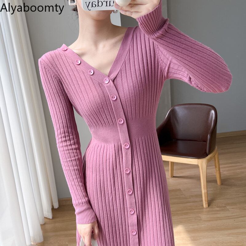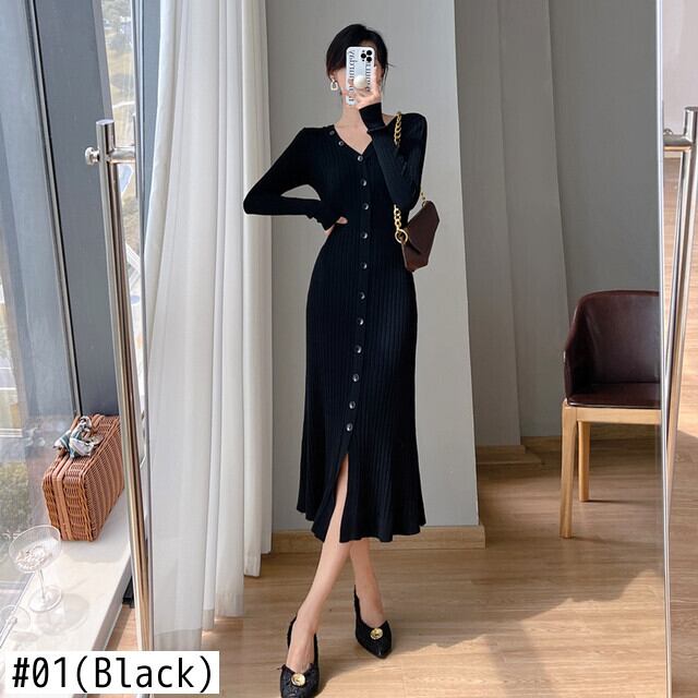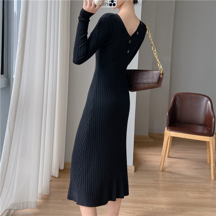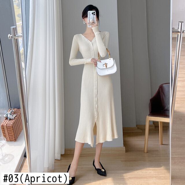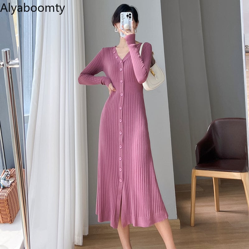 送料無料୨♥୧ オータムウィンターレディースニット ドレス Vネックブラックブルーセーター 秋物 冬物 パープル AOS6471920046
