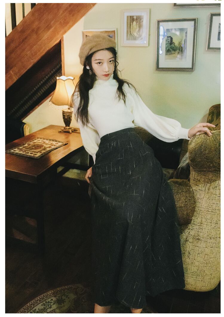 送料無料୨♥୧ オータムウィンターレディースホワイトニット セーター ウェストラインミディスカート スタイルセット 秋物 冬物 Aライン ヨーロピアン AOS83024736879