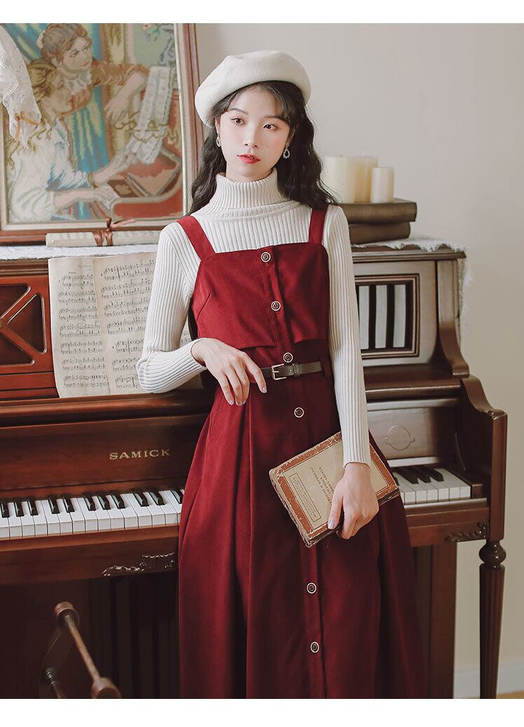 送料無料୨♥୧ オータムウィンターレディースソリッド ドレス スタイルカーキブラックレッドノースリーブベルト 秋物 冬物 ハーネス ソリッドカラー ヨーロピアン AOS88116922229