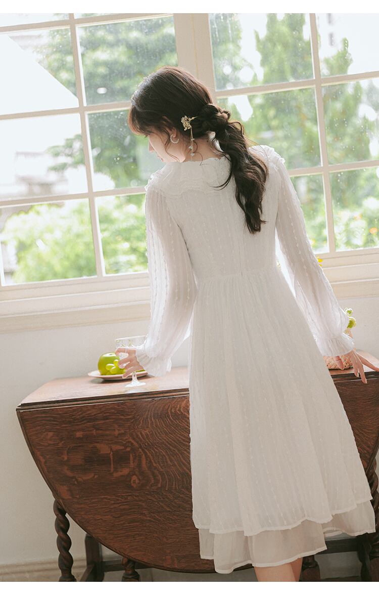 送料無料୨♥୧ スプリングオータムレディースホワイトミディドレス カラーリボンウェストフリル ラッフル 大人ガーリー スウィート キュート カジュアル 春物 秋物 スクウェア AOS2270866516