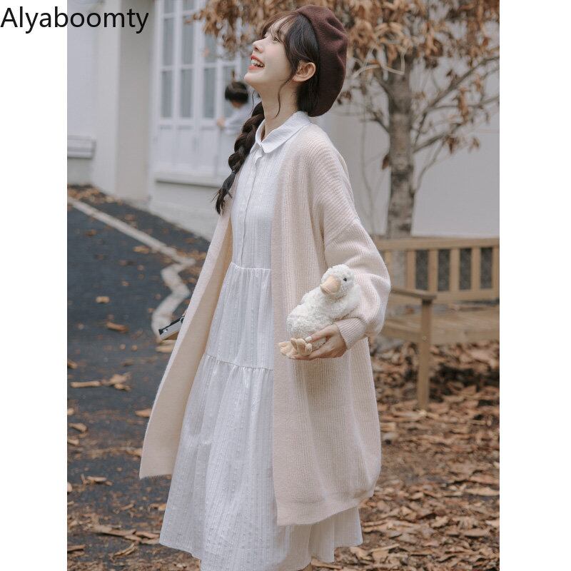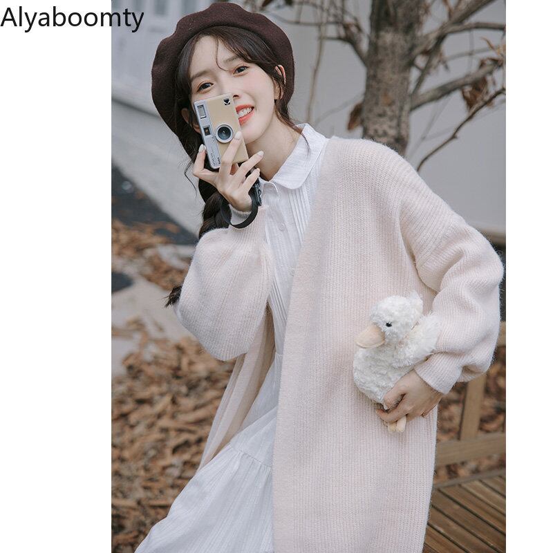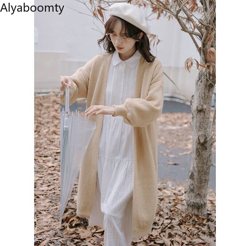 送料無料୨♥୧ オータムウィンターレディースロングセーター カーキニット カーディガンルーズミディアウター 大人ガーリー スウィート キュート カジュアル 秋物 冬物 AOS53088329621