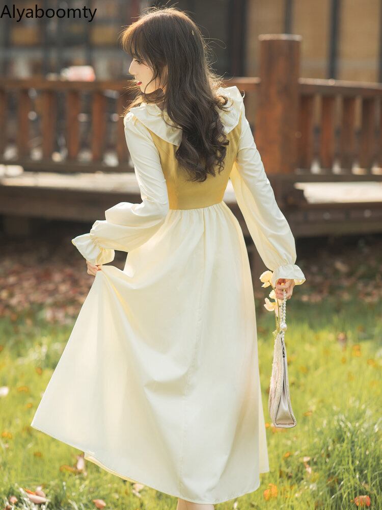 送料無料୨♥୧ スプリングオータムレディースドレス カラーパッチワークバンドミディ 春物 秋物 AOS10227826331