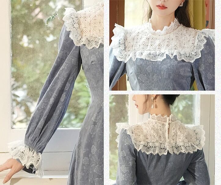 送料無料୨♥୧ スタイルスプリングレディースドレス スタンドカラーカラーレースフリルフローラル ラッフル 春物 花柄 AOS16103202290