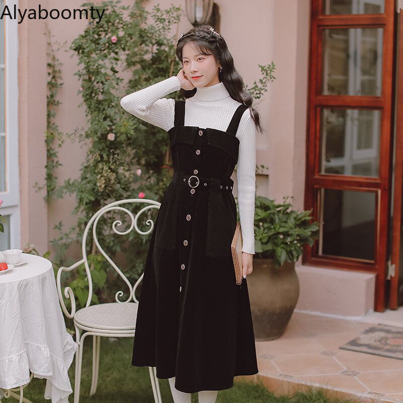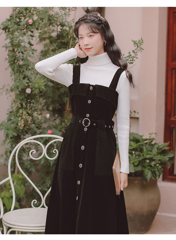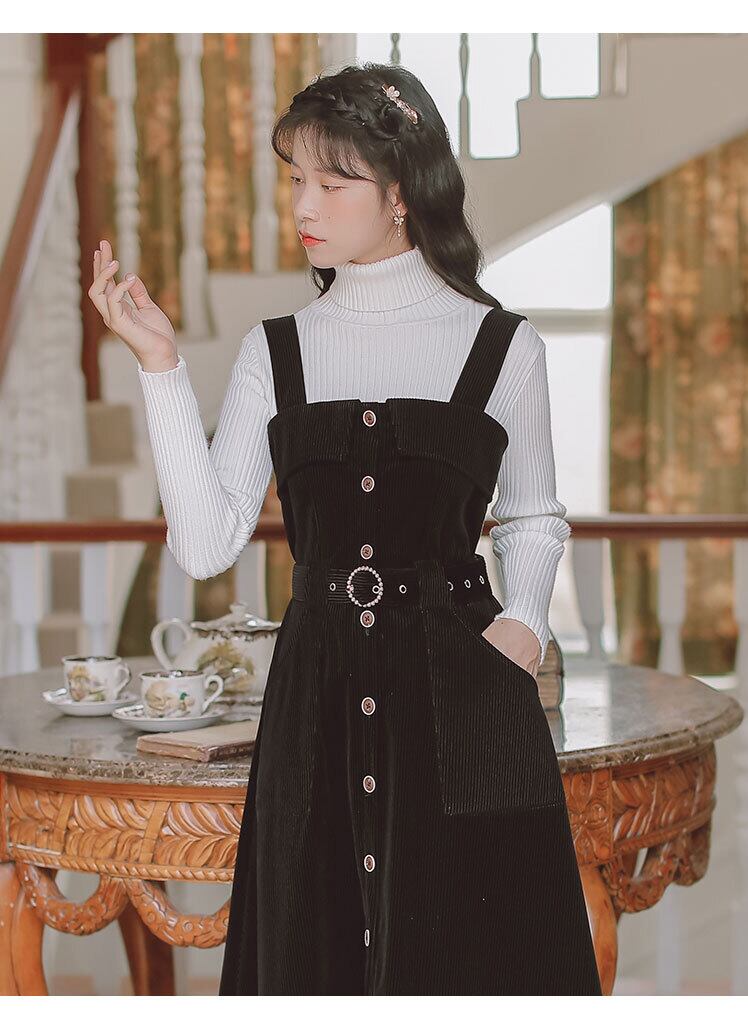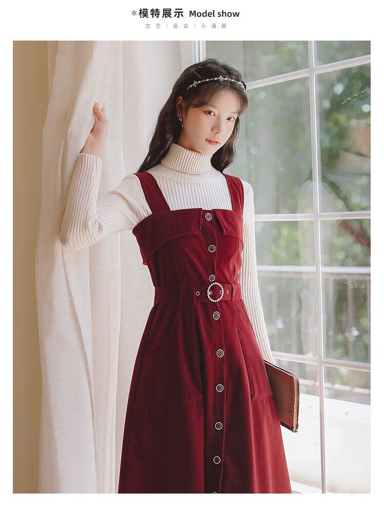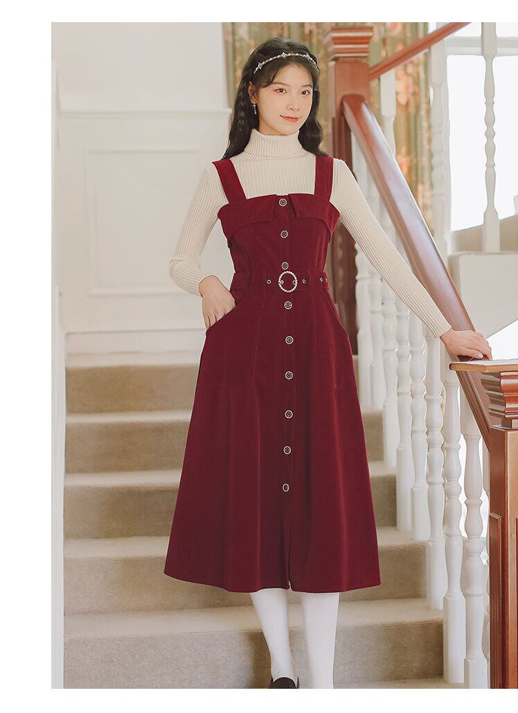 送料無料୨♥୧ オータムウィンターレディースドレス レッドブラックブルーコーデュロイノースリーブベルト 大人ガーリー スウィート キュート カジュアル 秋物 冬物 ハーネス AOS88985493057