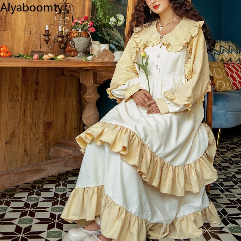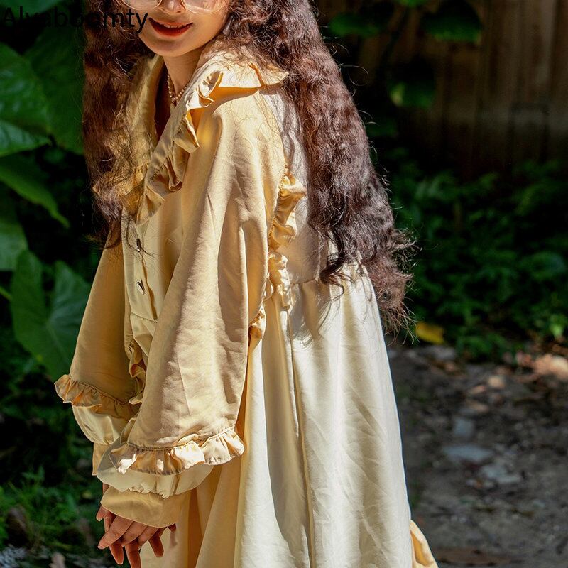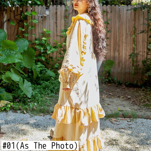 送料無料୨♥୧ スプリングオータムレディースドレス カラーイエローロングフリル レッド ラッフル 大人ガーリー スウィート キュート カジュアル 春物 秋物 AOS31122362896