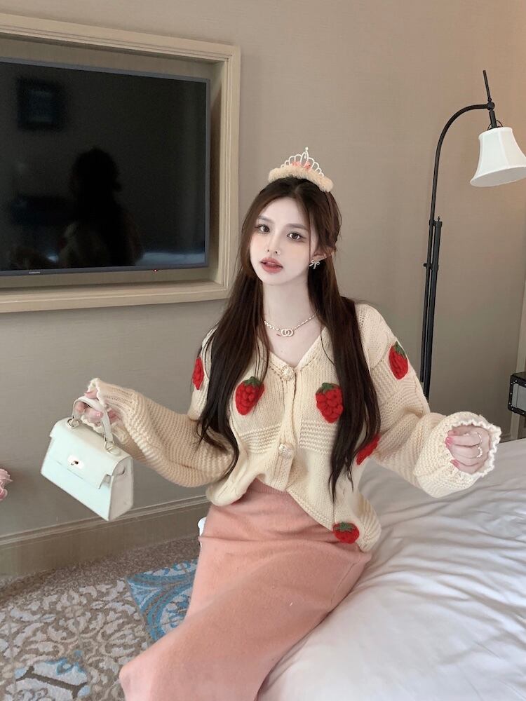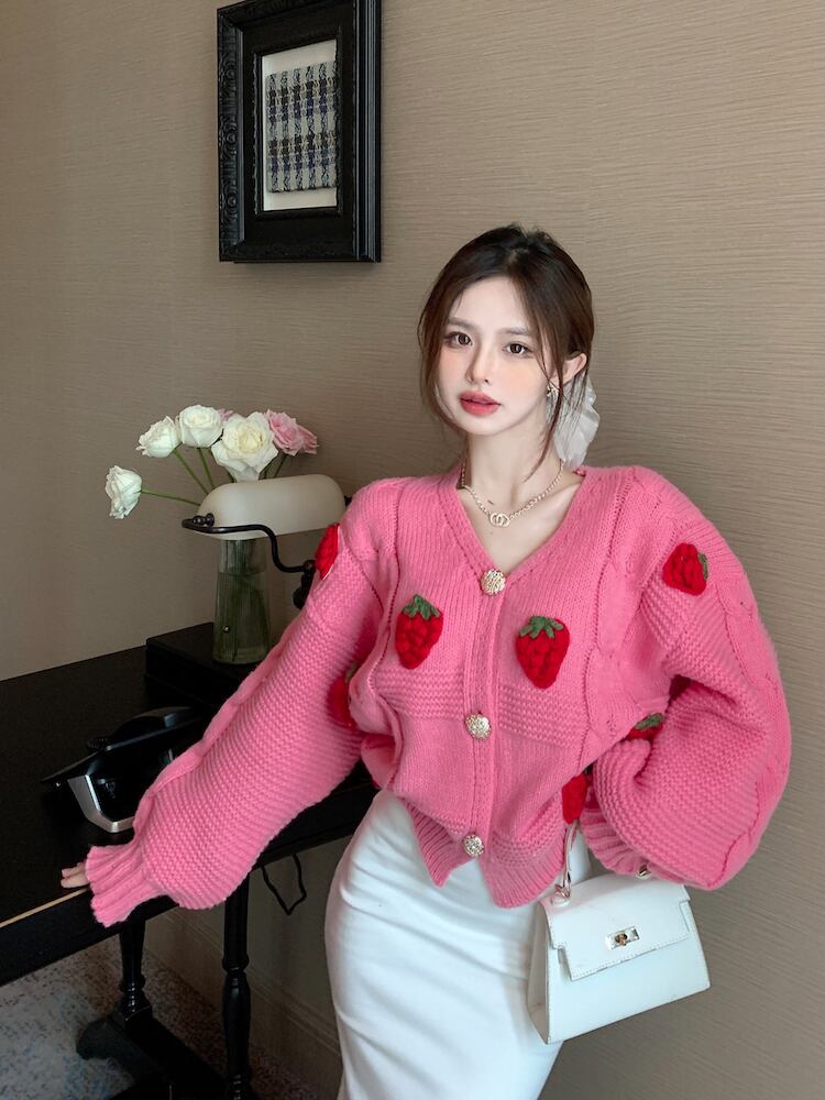 送料無料୨♥୧ オータムウィンターレディースルーズセーター Vネックブルーニットカーディガンスリーブアウター ピンク ランタンスリーブ 大人ガーリー スウィート キュート カジュアル 秋物 冬物 AOS6798138461