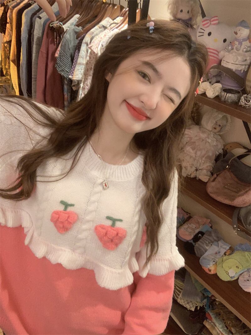 送料無料୨♥୧ オータムウィンターレディースアウターニットプルオーバー ルーズセーター ピンク 大人ガーリー スウィート キュート カジュアル 秋物 冬物 パープル AOS31554406207