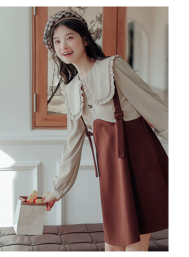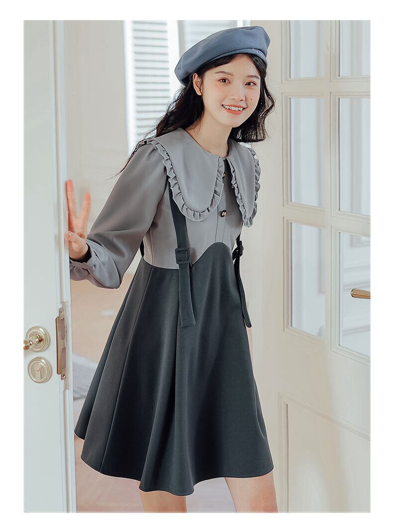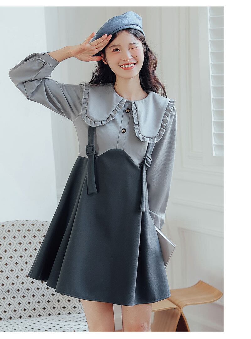 送料無料୨♥୧ スタイルオータムウィンターレディースミニドレス カラーカーキパッチワーク ブルー 大人ガーリー スウィート キュート カジュアル 秋物 冬物 AOS50606044713