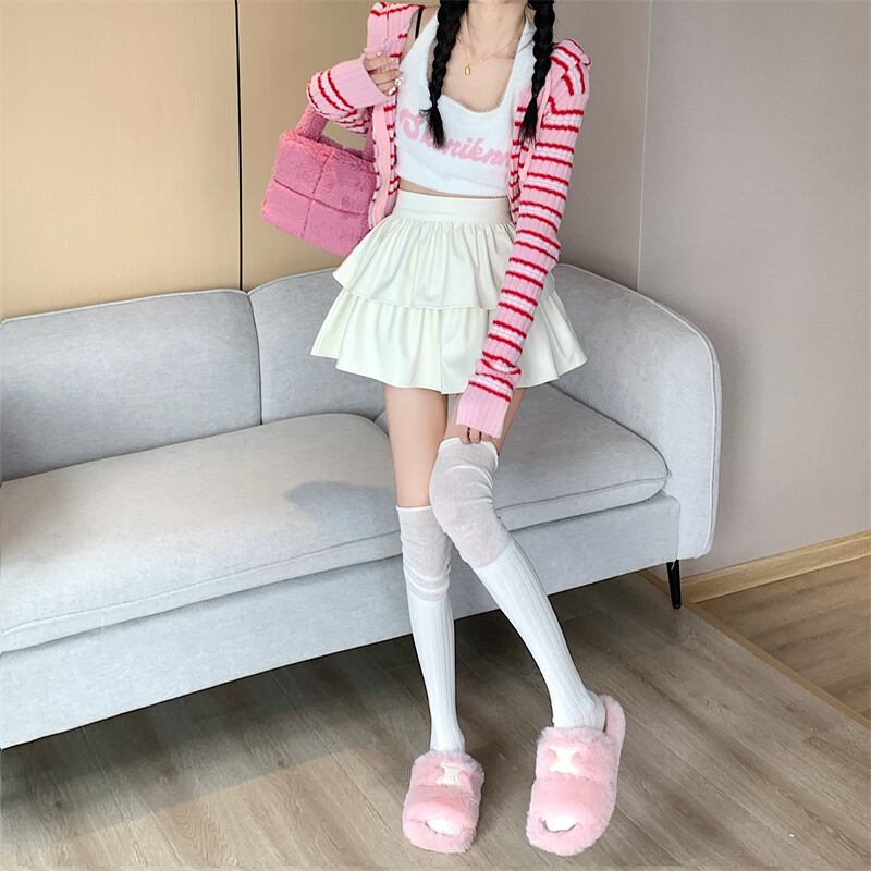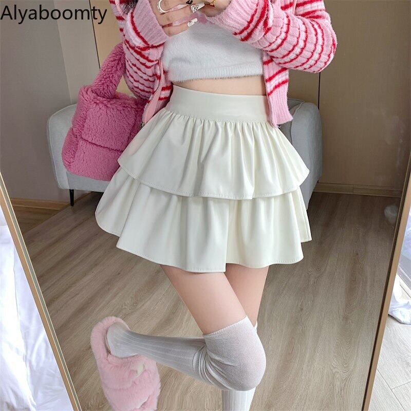 送料無料୨♥୧ レディースストリートウェアミニスカート ウェストブラックホワイトスタイルガウンフリル レッド ラッフル かわいい AOS12026554975