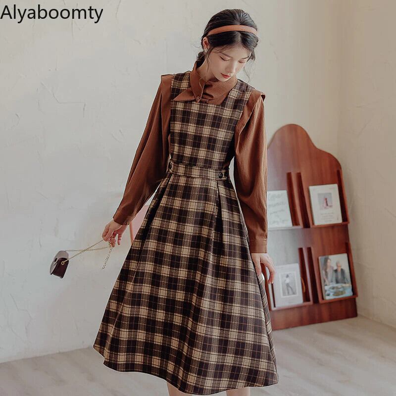 送料無料୨♥୧ スプリングオータムレディースドレス ルーズブラウス ヴィンテージミディカーキネイビー 大人ガーリー スウィート キュート カジュアル 春物 秋物 ビンテージ AOS87714771001
