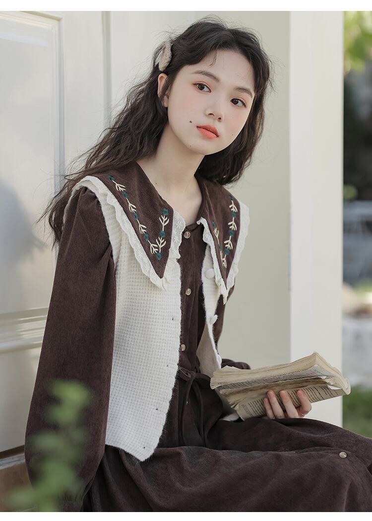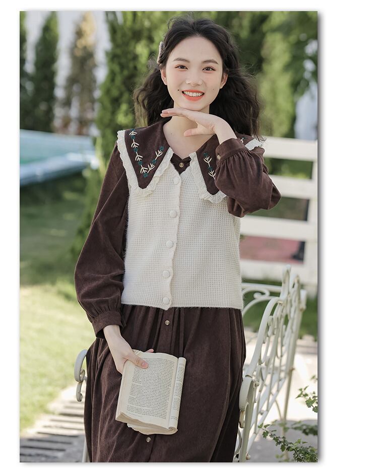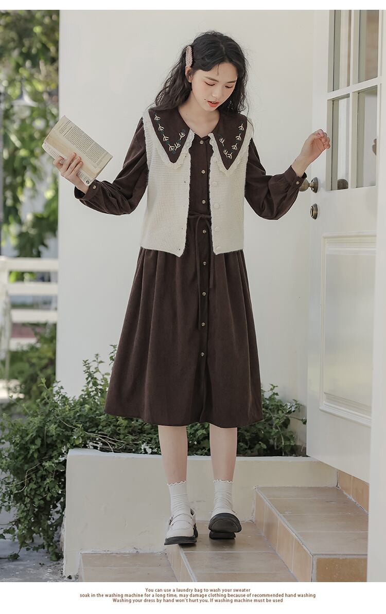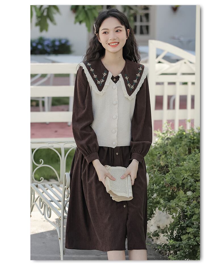 送料無料୨♥୧ オータムウィンターレディースドレス カラーコーデュロイシャツ 大人ガーリー スウィート キュート カジュアル 秋物 冬物 AOS3611795342