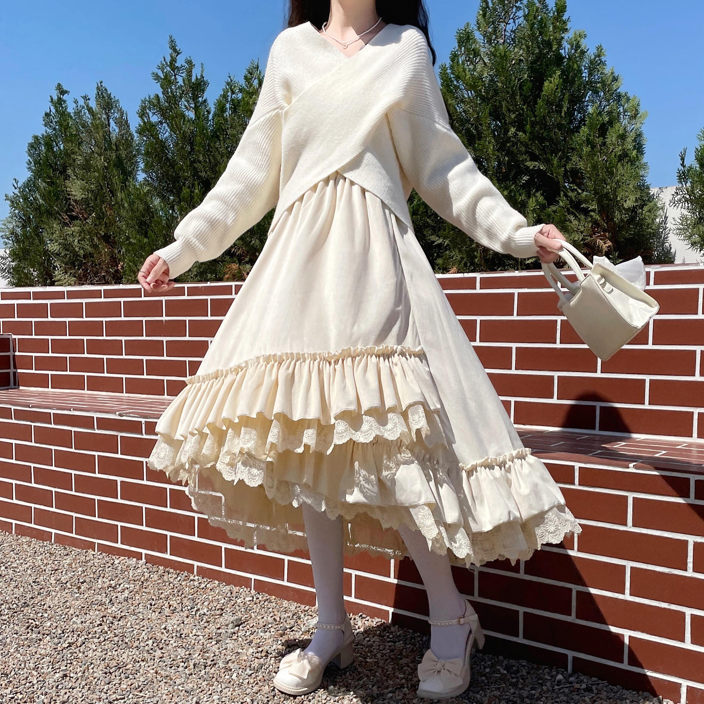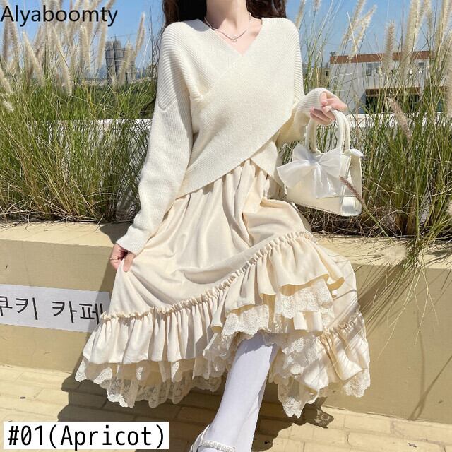 送料無料୨♥୧ オータムウィンターレディーススカート ウェストブラックベルベットミディレースフリル レッド ラッフル 大人ガーリー スウィート キュート カジュアル 秋物 冬物 AOS9442057488