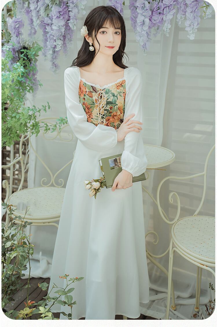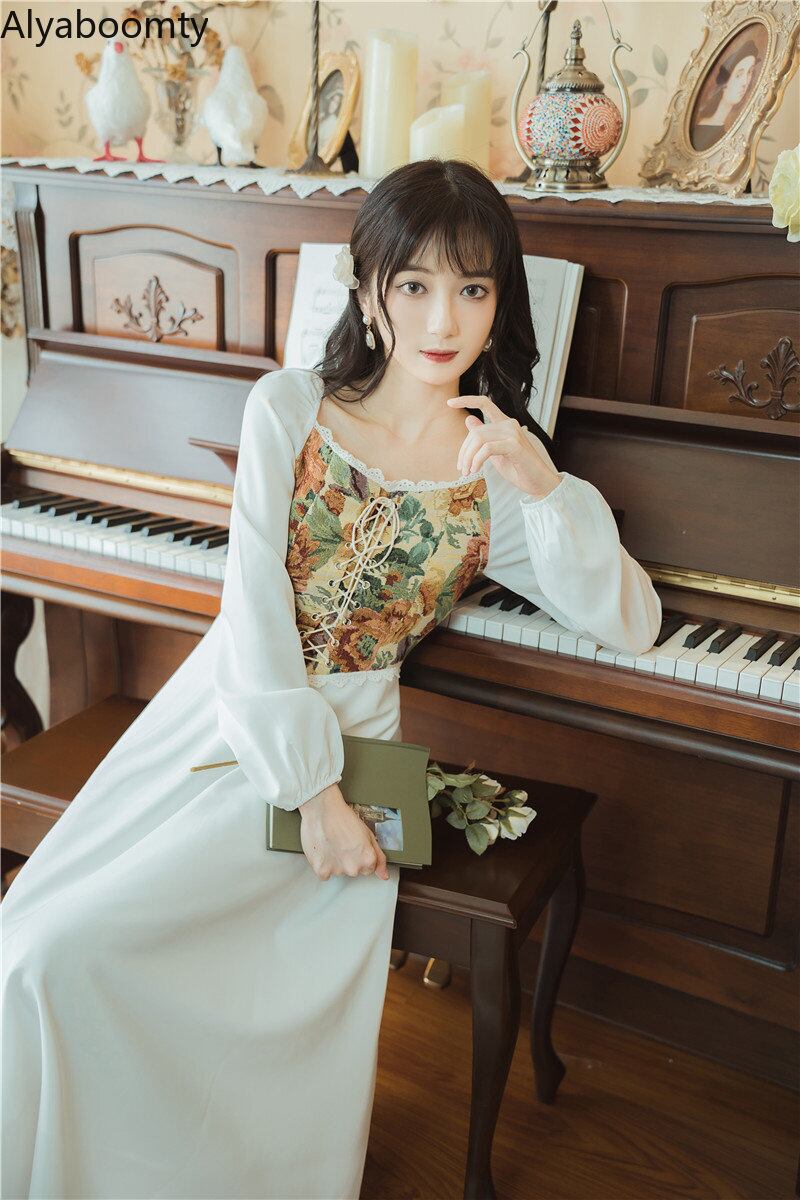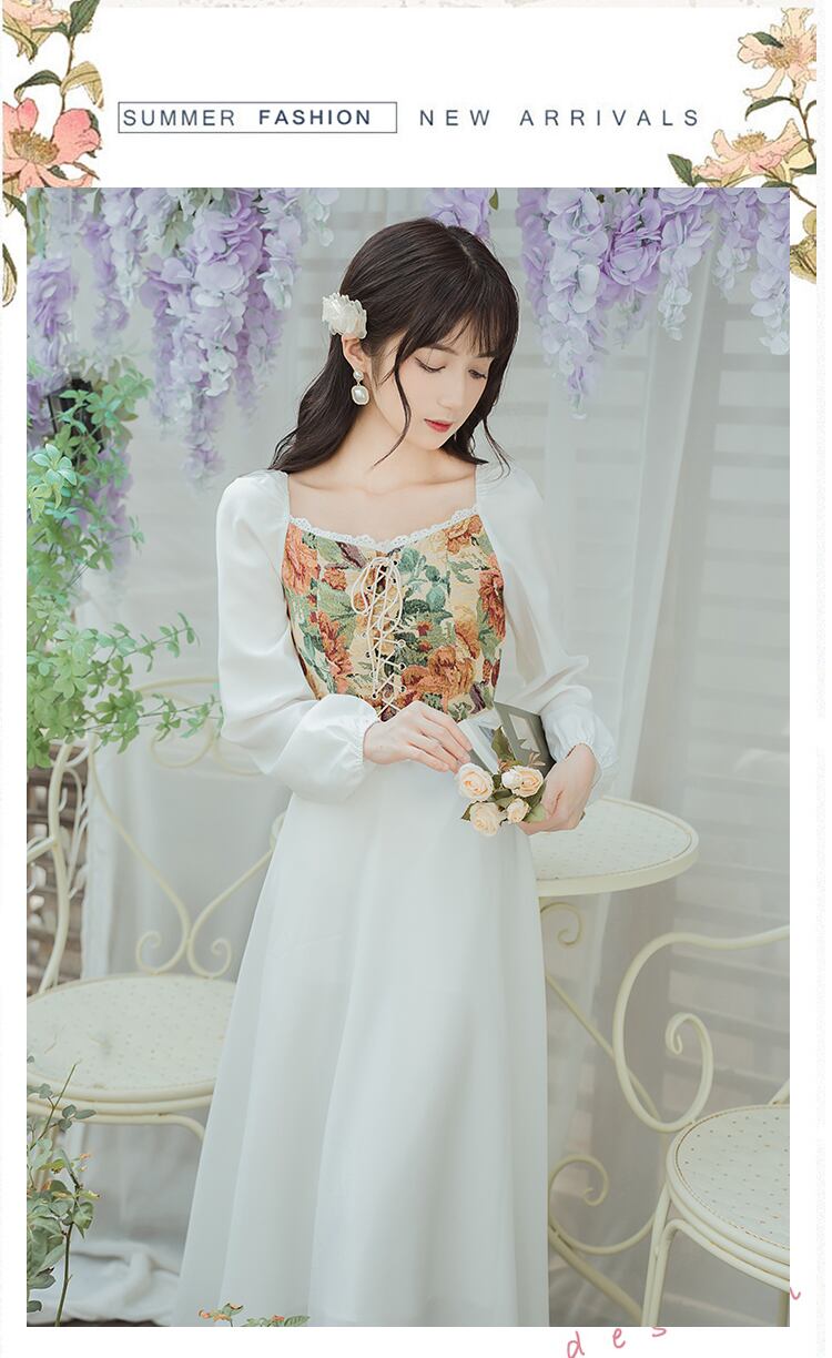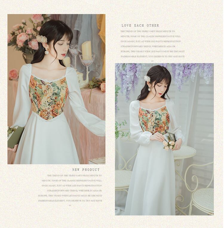 送料無料୨♥୧ スタイルスプリングレディースミディドレス カラージャカードパッチワークバンドスリーブAライン 春物 スクウェア AOS72545225742