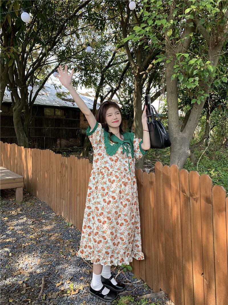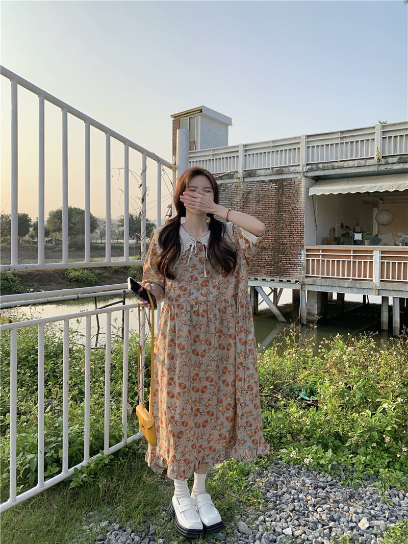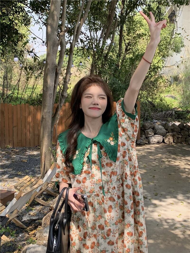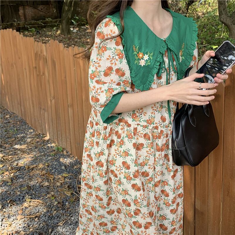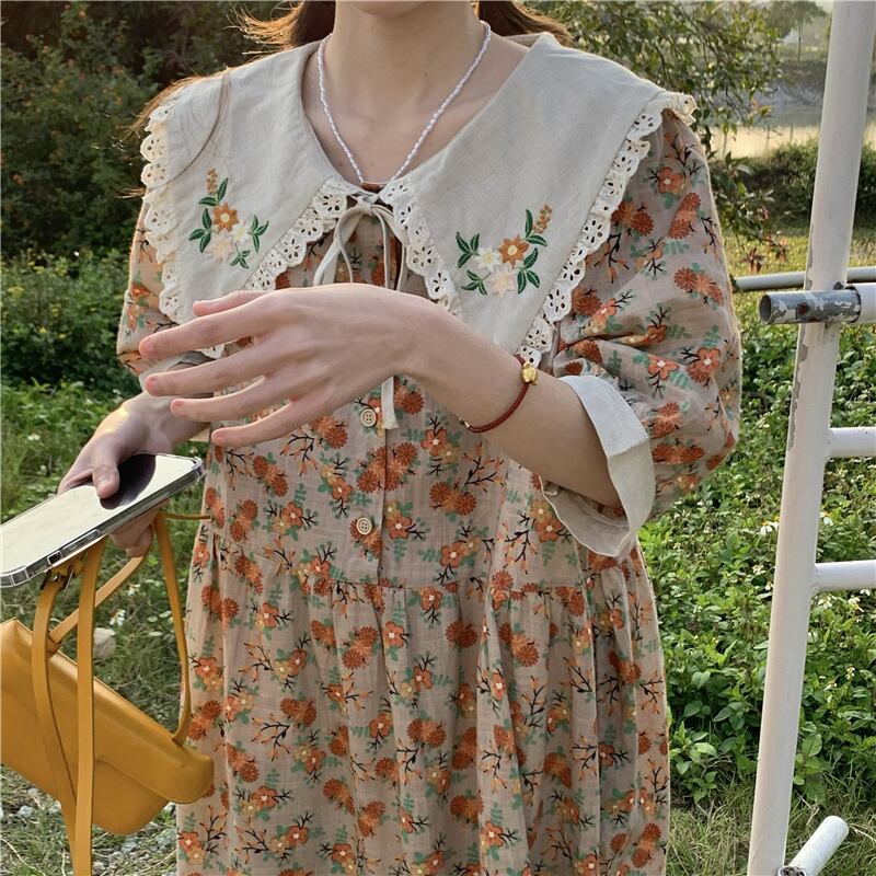 送料無料୨♥୧ スプリングサマーレディースミディルーズドレス カラーフローラル刺繍ヴィンテージバギー 大人ガーリー スウィート キュート カジュアル 春物 夏物 花柄 ビンテージ AOS51910313030