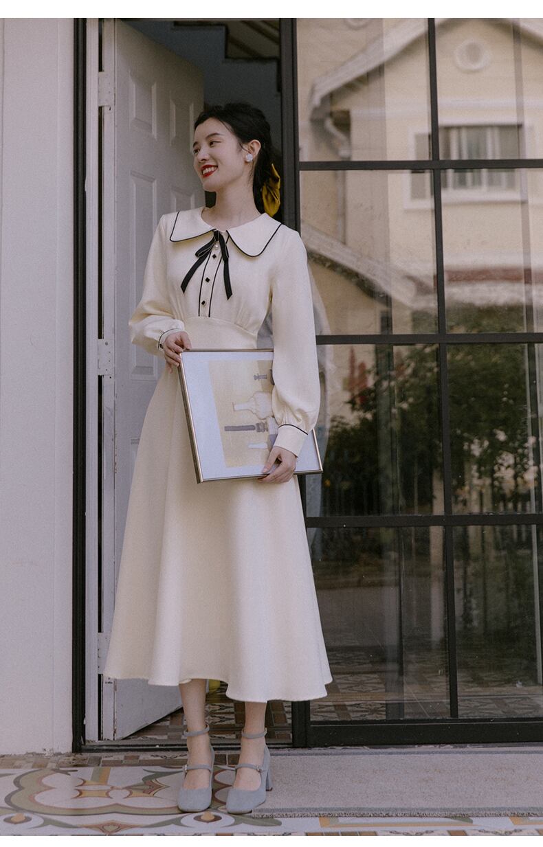送料無料୨♥୧ スタイルスプリングオータムレディースAラインミディドレス カラーリボンスリム長袖スリーブドレス ワンピース ロング 春物 秋物 ヨーロピアン 会社 学校 通勤や通学にも AOS88941666459