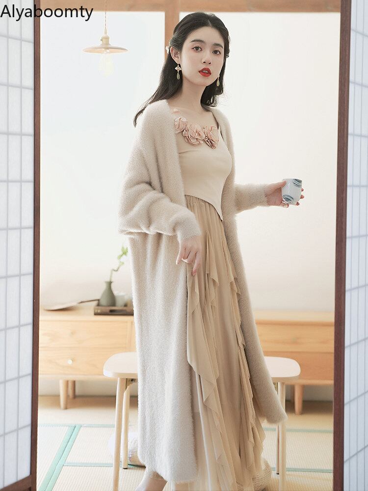送料無料୨♥୧ スタイルオータムウィンターレディースロングカーディガンソリッド アウターミディ 秋物 冬物 ソリッドカラー AOS14196893889
