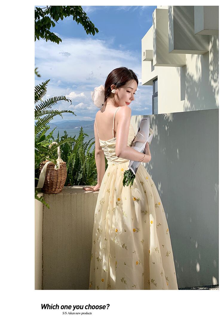 送料無料୨♥୧ レディースロングドレス フローラルプリント柄メッシュノースリーブ 花柄 AOS29757269485