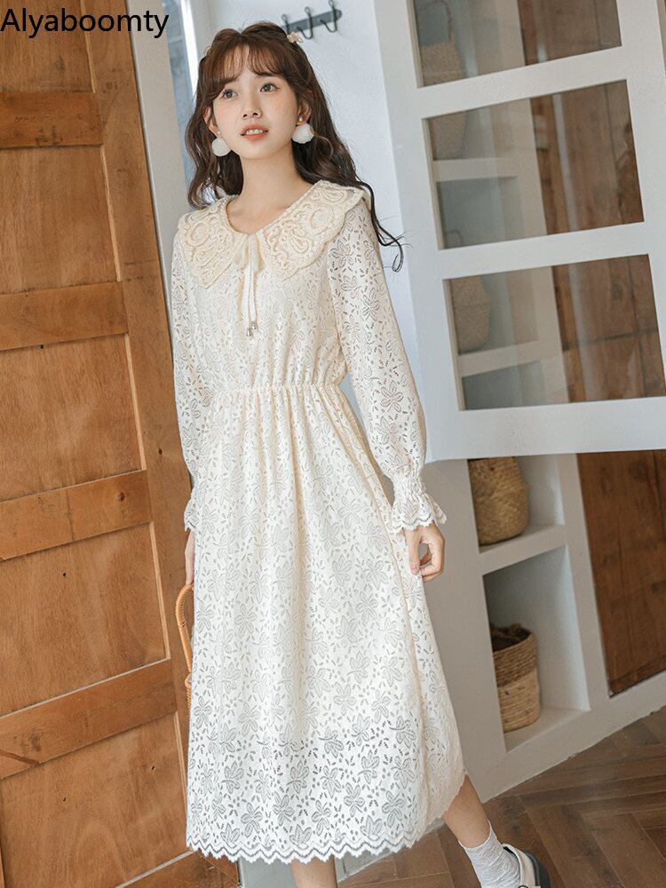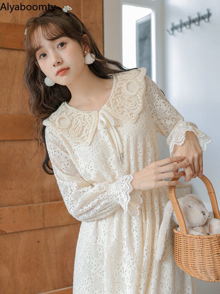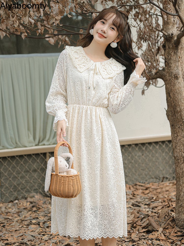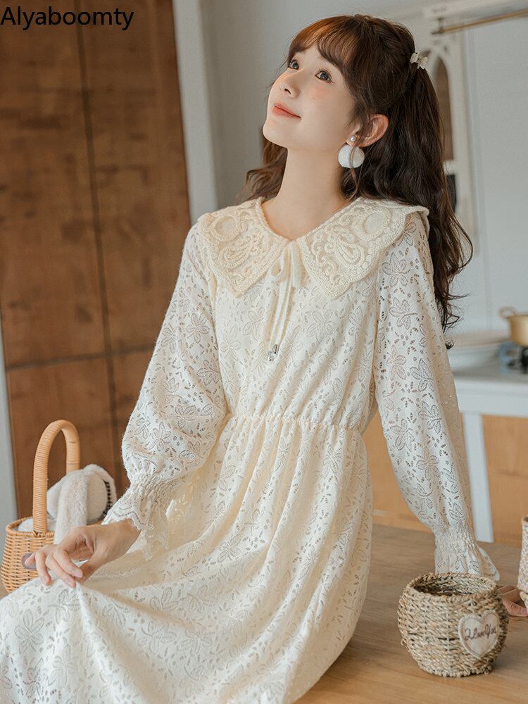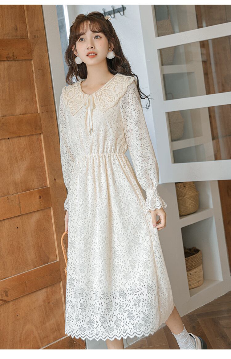 送料無料୨♥୧ スプリングオータムレディースレースドレス カラー 大人ガーリー スウィート キュート カジュアル 春物 秋物 AOS84437027792
