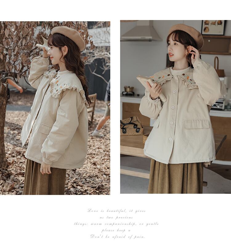 送料無料୨♥୧ オータムウィンターレディースカラーフローラル刺繍コート コットン 大人ガーリー スウィート キュート カジュアル 秋物 冬物 花柄 AOS26521488828