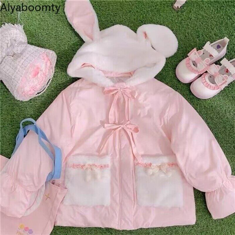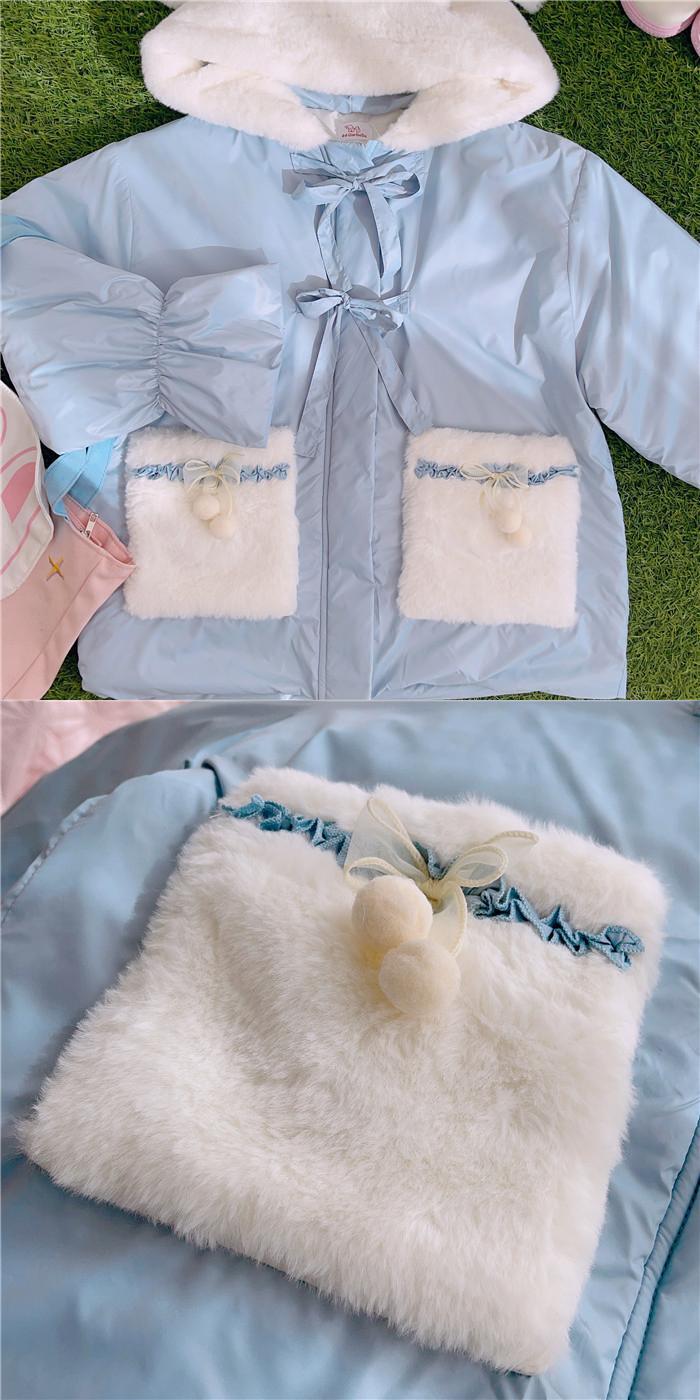 送料無料୨♥୧ カラーレディースフードブルーイエローコート リボンウィンター ピンク 大人ガーリー スウィート キュート カジュアル 冬物 AOS90175400129